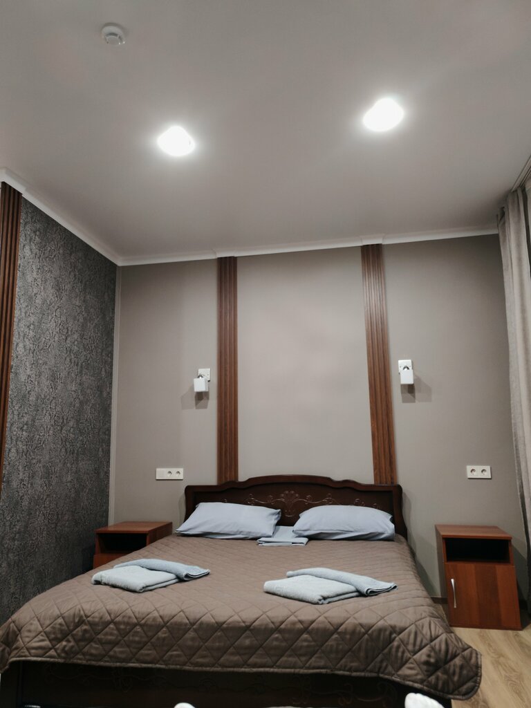 Остановились на ночь в этом отеле. Прекрасный огромный номер со всеми удобствами.дущевая кабина умывальник туалет. Тишина.прекрасно выспались. 4 (!) спальных места. Одноразовые тапочки. Шампунь мыло. Кровать с хорошим матрасом. Телевизор холодильник. Прекрасно отдохнули. Поеду ещё остановлюсь здесь! Приятный вежливый персонал. Отлично накормили. Есть wifi. Кондиционер. Номер походит для 4 человек. Двухспальная кровать и две односпальная. Большая стоянка. чисто в номере. Тараканов нет. Потолки высокие. В номере тепло.