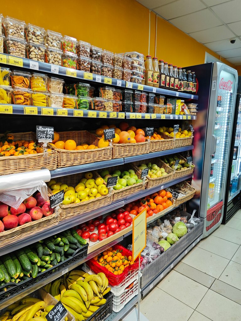 Хороший магазин. Есть все необходимое. Хорошее качество фруктов. Вкусный и свежий хлеб. Есть пироги и пирожное. Цены чуть выше.