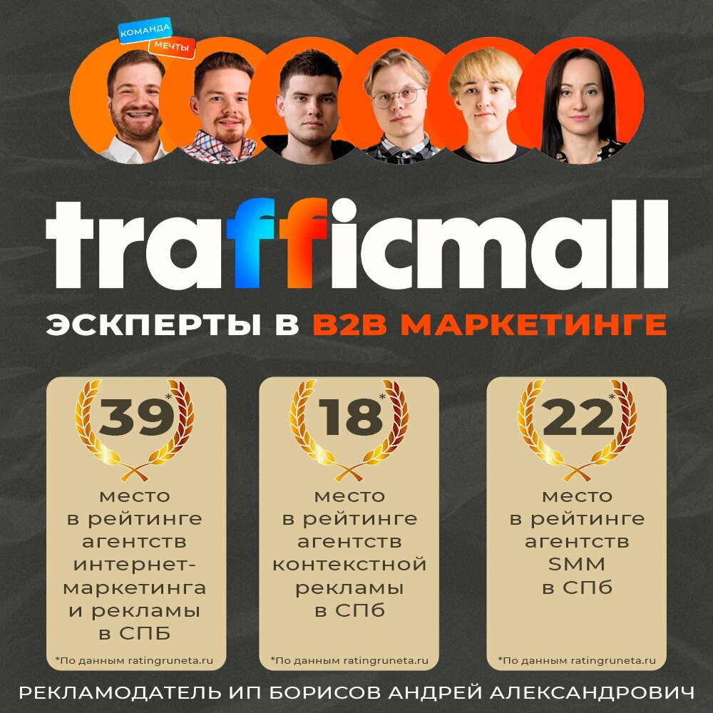 Работаем с агенством TrafficMall 4 месяца. За этот срок удалось повысить конверсию эффективности, что для нас являлось задачей № 1. Спасибо команде за всегда новые и свежие идеи, а так же их воплощение! Отдельное спасибо Денису и Андрею, за ежедневную и быструю обратную связь! Успехов вашей команде и только вперёд!