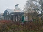 Очень красивая изба. Из нее собирались делать трактиръ, внутри куча тарелок, барная стойка, но в итоге все закрыто, увы. Стоит остановиться и рассмотреть резные наличники