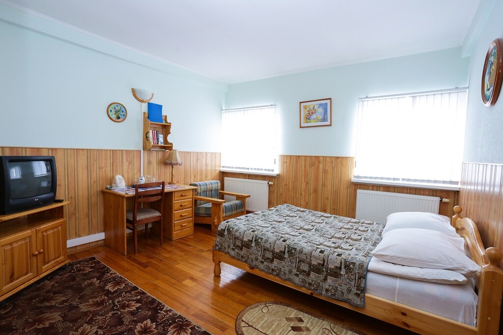 Гостиница я считаю не плохая, был в улучшенном номере #2. В номере чисто уютнинько, номер не маленький, в номере имеется шампунь, мыло, туалетная бумага, три полотенца в наличии, тапочки белые как в поездах, чайник посуда, 2 пок чая, 1 пок кофе, 1 бутылочка не газерованной вады на столе! Что важно имеется завтрак который входит в сумму оплаты номера, номер на момент временного прибывания за сутки стоил 2500р. Во дворе гостиницы имеется порковка, правда плата отдельная сутки 120р считаю не дорого. Гостиницу советую!