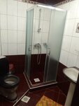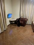 Выглядит гостиница очень приятно, парковочных мест достаточно, на первом этаже столовая (как там кормят не знаю, не пробовали), номера на 2м этаже, не много, но это и хорошо. Везде кафель, всё чисто, вода есть (горячая идёт нормально), ценники тоже приемлемые (двое взрослых и ребенок 12 лет - 2500 рублей), можно с собакой (для нас это важно). В номере 2 хороших кровати (широких) и кресло раскладное, матрасы нормальные (не прогибаются), хотя немного скрипят, есть холодильник и телевизор (нам не нужен был), душ и туалет. Дают полотенца, чистое постельное белье, одноразовые тапочки и мыло. Единственный минус это отсутствие пульта для кондиционера (персонал мне его не нашел), из-за а чего ночью жарковато. За это сняла звезду. Окна не открыть - комары залетят, сетка порвана на одном окне, на другом отсутствует. Переночевать то можно, но хотелось бы пульт, все таки, в номере иметь.
