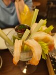 Креветочный бургер был с сырыми креветками, не хватало соуса, слишком рыбно. Картофель фри хороший. Творожные пончики не оказались пончиками на деле, всего лишь шарики из творожного теста. Ожидал получить пончики с творожной начинкой. Коктейль сливовый на сидре был на вкус как дешевый коктейль из банки.