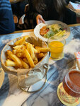 Известное заведение, оформлен в стиле старого паба. Встреча, гардероб, провожают за стол. Обслуживание прекрасное, рассказывают о блюде, сообщают примерное время подачи. В утренние часы заказ был на омлет Арнольда Беннета. Наверное, ожидание чуть превзошло само впечатление: небольшая сковорода с омлетом под слоем ароматного выдержанного сыра, но из заявленных лангустинов было обнаружено от силы 5-6 маленьких кусочков, по общему объему как будто накрошили 3 креветки. Хлеб был очень кстати, вкусный. В целом, впечатление хорошее.