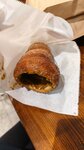 Это не трдельник. У трдельника совсем другая форма, он здесь сухой, поскольку фиг знает когда их готовят, а при покупке их просто подогревают. Начинка невкусная (соленая карамель), намазывают ее неряшливо толстым слоем во периметру широкой части трдельника, половина булки, которая сужается остается без начинки. А без начинки она совсем не вкусная. За триста рублей купила то, что в итоге выбросила. Всем советую трдельник в г. Пушкин. Он там шикарный.