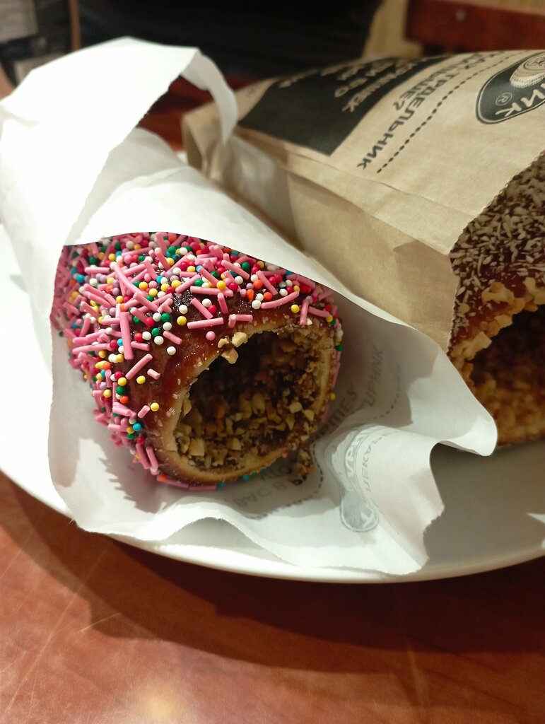 Зашла в жаркий день, привлечённая необычным названием на вывеске. Приятная девушка рассказала мне что это такое. Наблюдая за процессом приготовления трдельника, я спокойно отдохнула. Всё было вкусно: и трдельник со взбитыми сливками и капучино. Только трдельник со взбитыми сливками надо есть быстро, т.к. из вкусной, но тёплой трубочки сливки начинают вытекать. Думаю, что зайду сюда ещё.