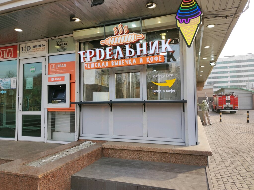 Really trdelnik... For an amateur. You have to love Czech pastries so much, which are not particularly known to our society, to pay 4,000 tenge for a tube stuffed with vegetables and a strip of salmon. The atmosphere is not very cozy, it feels like you are sitting in the hallway because of the through doors. Low ceilings. The overall environment is clean. The guys are polite employees.