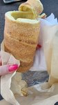 Тесто вкусное, но трдельник с корицей по факту без корицы, но с сахаром, на просьбу сделать свежий трдельник и на вопрос про корицу продавец начал нервничать