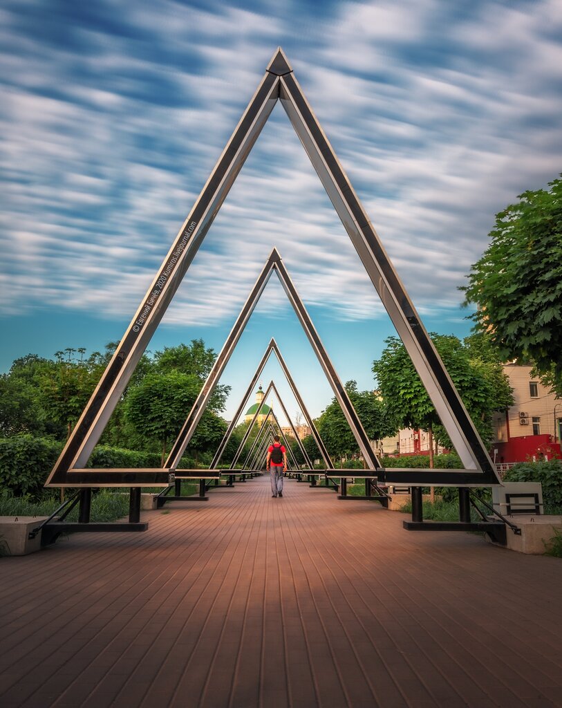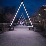 Необычный арт-объект. Треугольники являются частью новой городской праздничной иллюминации. Одно из самых ярких мест для фотосессии в вечернее время. Минус: требуют ремонта