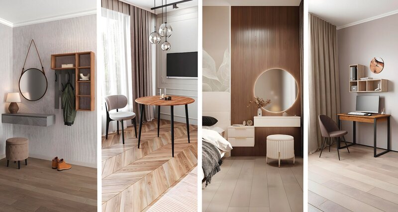Type of furniture:for the hallway, facades, wardrobes, tables, custom made for the bedroom, chairs, custom made for the kitchen, custom made for the living room, beds, transformer furniture