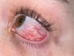 мало того, что я заболела конъюнктивитом на следующий день, я не могла даже нормально моргать, + у меня чесались все глаза, а после этого начали выпадать свои ресницы… ужас. на 1 фото сразу после процедуры, как я пришла домой. на 2 фото глаз через неделю👍🏻 и это мое не первое наращивание, не было никогда никаких таких симптомов. это первые, и ужасные.