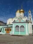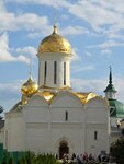 Прекрасный Собор с куполами золотого цаета.Именно в нем Мощи основателя Монастыря,которого почитает весь Православный мир.Езжу к Сергию Радонежскому с прошлого века.Вызывает благоговение ,трепет.Сергий Радонежский помощник всем и каждому.Справа от Раки-дверь к Мощам других Святых.