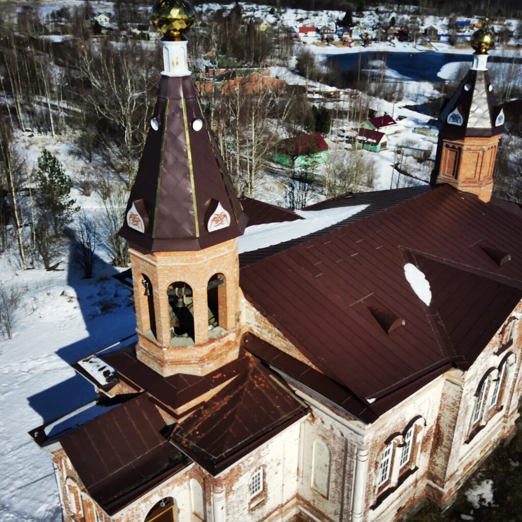 Много лет подряд, изредка заезжая в село, с горечью смотрел на полуразрушенную церковь. Наконец, в 2009 году что-то сдвинулось и начался процесс восстановления, который продолжается и до сих пор. Сейчас, через 15 лет после начала ремонта стал виден результат. Церковь это уникальная, с необычной судьбой. Прежде всего это редкий пример заводского храма. В 1707 году, по указу Петра Петрого, в селе Кончезеро саксонским мастером Вольфом Мартином Циммерманом был построен металлургический завад, который работал до 1905 года. Деньги на строительство церкви были выделены горным ведомством, часть собрали работники и местные жители. В 1866 году храм был построен, а в 1877 году освящен. Получился кирпичный одноглавый однопрестольный храм с интегрированной колокольней, нетрадиционного для северной православной архитектуры вида (похожий на католические костелы). В 30-годы храм был закрыт и превращен в склад, а в 80-годы начал руинироваться. Интересно, что Священный Синод в первый раз не утвердил проект храма, как раз по причине его схожести с католическим. Проект был переделан в 1864 году, но упрямые карелы все равно сделали храм отличным от других. Еще из интересного: в этом обычном сельском (заводском) храме в карельской глуши хранились несколько старых риз из церкви в Марциальных Водах, сшитых супругой Петра Первого императрицей Екатериной Первой. Иконы для этой церкви были написаны знаменитым русским художником академиком императорской академии художеств Ильей Ефимовичем Репиным (основателем движения художников-передвижников) и его соратниками по этому движению академиками Академии художеств Иваном Николаевичем Крамским, Фирсом Сергеевичем Журавлевым и Александром Ивановичем Морозовым.