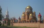Место, очень напоминающее Храм всех религий в Казани. Пафосно, монументально, странно. Два льва на входе. На углу - танк. На другом - памятник князю Владимиру. Внутри детская площадка с самолётом, опять львы, ангелы и прочая и прочая. Тут вам и псевдо-русский стиль, и барокко, и что-то из готики, и деревянная архитектура. В общем, место странное.