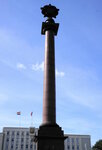 Триумфальная колонна в честь победы в Великой Отечественной Войны стала визитной карточкой этого места. Помимо звезды Ордена Победы на ней размещён барельеф Георгию Победоносцу, а у основания - лавровый венец с фонтанами. Интересное композиционное решение, делающее этот объект самостоятельной "архитектурной изюменкой" этого места.