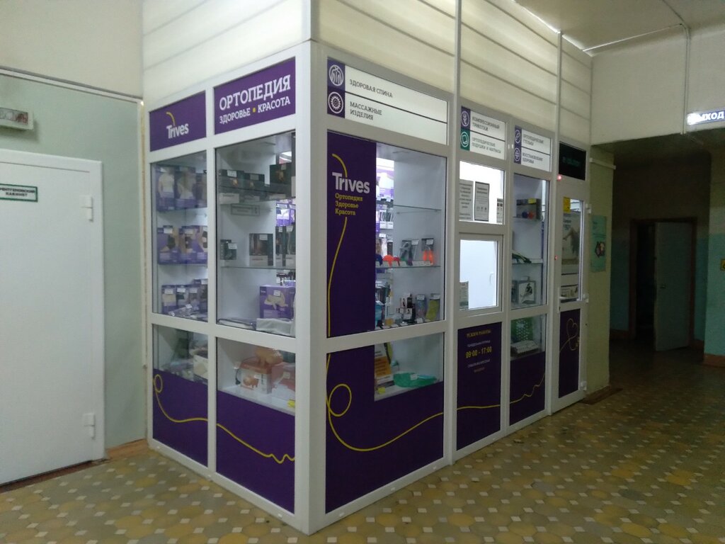 удобное расположение в здании травмпункта! Его пациенты физически не всегда могут позволить себе поездки по городу. в поисках необходимого ортеза, костыля, тросточки и т.д. В салоне "Тривес" можно приобрести товары для здоровья, рекомендованные врачом сразу после приема, не тратить время и силы на поездки по городу. Консультант поможет с выбором размера, , дополнительно предложит сопутствующие товары. Очень много акций, скидок. Возможно даже доставка под заказ необходимого товара. РЕКОМЕНДУЮ!))