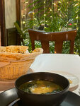 В целом, приятное тихое местечко. Только соседи шумные потом подошли. Еда по мне, с сильно завышенной ценой, самая обычная, а ценник выше среднего. Паста 950₽, просто паста, без вау. Суп на тройку, кучу шпината который ложкой есть достаточно стремно тк тянется как прошу прощения сопли вперемешку с сыром и жесткие хвостики у листвы можно было убрать,и немного овощей в супе было. Хотя суп овощной. Для двух занятых столиков обслуживание долгое. Скорее всего больше не приду
