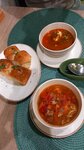 Кафе находится недалеко от набережной. Есть летняя терраса, столики на первом этаже, на втором этаже банкетный зал, а также есть игоровая комната для детей. Кафе уютное, интересный декор на стене . В первый раз была 2,5 года назад, и вот приехав в Керчь решили снова посетить это кафе. Меню разнообразное. При выборе, не все оказалось в наличии, не было шурпы и черного классического чая. Ну как же так, нет черного чая? Заказали солянку, лагман, пампушки с чесноком и зеленью, люля, картофель отварной, мидии жаренные с луком, хинкали, чай травяной. Лагман принесли тёплый, не горячий, хотя солянка была горячая. Люля очень странно внешне выглядила, не похожа на классический люля-кебаб. Хинкали почему-то без хвостика, соусы к нему не предложили. Хинкали в грузинских кафе конечно вкуснее. Вареную картошку принесли в самом конце, сказали, что подзабыли про неё. По вкусовым качествам все вполне прилично. Цены доступные. Обед на двоих обошёлся чуть меньше 1500 руб.