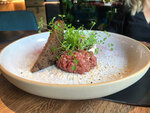 Великолепный гасробар! Вкусно до последней ложки! Тар-тар из подкопченой говядины с вяленой хурмой - это бестселлер и однозначный мой фаворит. Говядину подкоптили на грушевой щепе и это дает невероятный изысканный вкус. Восторг! И жемчужина в меню - фисташковый тирамису. Сверху зелёный спонж из черемуховой муки и крошки из бельгийского шоколада. Ум отъешь! Обслуживание на высоте, отдельное спасибо официанту Вадиму за вкусные описания и рекомендации!