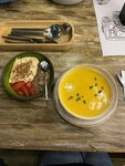 Мы в восторге!!! Такого суперского места мы еще не видели. Дизайн помещения современный, простой и лаконичный. Очень удобные дивпны и столы. Разнообразное меню по недорогим ценам. Приятно удивило меню для детишек.. Отдельное спасибо вам за заботу. Приятная музыка, негромкая. Обслуживание отличное. Официанты уделяли внимание, особенно детям. Увлекали их, предлогая выбрать разукрашки и карандаши. Очень тронули напитки с пожеланиями, нигде такого не видела. Отличная идея. Есть такое золотое правило: как хотите, чтобы люди относились к вам, так и вы относитесь к ним. Ваше отношение выше всяких похвал! Порции хорошие и обалденно вкусные. Шеф повару низкий поклон. Мясо таяло во рту, лапша - язык проглотишь, суп-пюре очень нежный. Потратили на двоих 2100р (2 салата, 2 лимонада, суп-пюре, лапша и десерт). Блюда принесли очень быстро, минут за 10-15. Есть еще некоторые бонусы. Не теряйте никогда свою изюминку, чтобы именно из-за нее хотелось прийти к вам еще и еще. ❤️😊Обязательно придем .