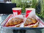 Обожаю эту пекарню! Персонал на высшем уровне, всегда заинтересованы, не на отвали работу свою делают. Есть два зала, один у кассы, второй более уединенный, там по прохладнее в жаркий день. Больше всего из десертов нравится вензель с малиной, круассан с клубникой, Моти груша-гаронзола. Латте орех это просто бомба 💣 У них еще есть холодильники с медовым, там нравится паштет куриный, сгущенка вареная (у них называется кахета вроде) и шницель очень вкусный в заморозке. Короче, советую!!!