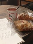 супер атмосферное место, нежнейшая выпечка для тех кто захочет прийти - особо советую круассан с малиной и гранатовый глинтвейн, он моя отдельная любовь. из сытного мега вкуснейшая карбонара ещё кофе, тут делают сбалансированное, всегда нормально вспененое, к сожалению такое не везде делают, но тут🤌 рыженькая бариста и бариста с челкой моя отдельная любовь