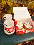 Недавно побывали здесь, взяли булочки с корицей и кремом, а также ореховый латте. В целом, выпечка и напитки вкусные, остались довольны Однако стоит отметить, что в обеденное время на выходных здесь могут быть довольно большие очереди. Поэтому если вы планируете быстро перекусить, лучше приходить заранее или в другое время