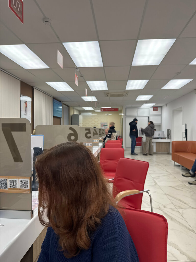 Обновлённый отремонтированный офис. Кондиционер! 😍 Вежливые и компетентные сотрудники. Понимают с полуслова, какую нужно получить услугу. Очередь электронная по талонам, время ожидания ну максимум 5 минут. Всё отлично. Спектр предоставления услуг обширный. И да, я не работаю здесь, я учительница. Мой отзыв настоящий Спасибо🙏💕