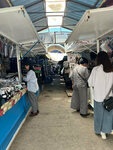 Обычный,среднестатистический рынок. Можно одеться с ног до головы ,купить фрукты,овощи и мясо. Цены адекватные. Не нравятся плитка под ногами, где- то она торчит,а где-то вовсе нет. В мясной отделе цены средние,даже ниже,чем в других городах . Можно купить курицу, утку, свинину, говядину , баранину и даже конину. Оплата переводом либо наличной,мало у кого есть терминал. На вид,мясо хорошего качества, свежее и пахнет ароматно. Вот,только сам павильон старенький, не современный, местами грязноватый.