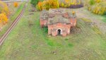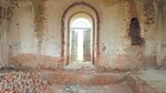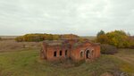 Осень. Низкое небо. Вроде бы яркие краски, но голые печальные стены. Остался только каркас с пустыми глазницами окон и груда кирпича внутри. Хотя вокруг трава покошена и внутри бардака нет. Есть иконы, значит кто-то служит.