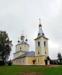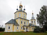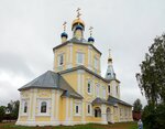 Будний день. С неба поливает. Небо низкое и тёмное. Большая ограждённая территория. Тщательно покошенная трава соседствует с грунтовыми проплешинами. Явный контраст с некоторыми соседними заросшими участками. И ни одной живой души ни на территории Храма, ни рядом. И Храм заперт. Рядом с калиткой висит расписание служб. Не часто, не каждый день. Хотя смотришь на эту приведённую в прекрасное состояние церковь и думается, что жизнь здесь должна бурлить... Не бурлит...