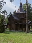 Прекрасное место. Проезжали с женой через город, увидели на карте и решили посмотреть своими глазами. Чудесный воздух, тихо, спокойно. Церковь прекрасный пример деревянного зодчества, приятно смотрится в тёмном цвете. Внутрь не заходили, просто походили по дорожке и погладили местную живность.