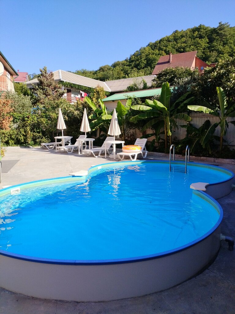 Приветливые хозяева, чистота, отличная кухня - очень чистая и современная посуда, в номерах чисто, запаха в санузлах неприятного нет. Соблюдается режим тишины, что очень важно, во дворе ухоженный бассейн, и двор благоухает цветами.