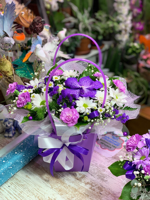 Забежали сегодня с детьми за цветами перед 8 марта для учителей. Мы выбрали благоухающие лиловые и розовые первоцветы гибискуса. Флорист любезно составила несколько очаровательных букетиков.