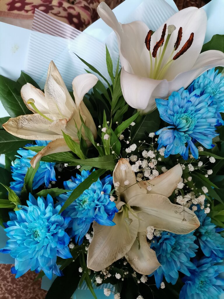Yesterday morning (08/28/2021) we bought a ready-made bouquet of chrysanthemums and lilies at this outlet. It cost 45 rubles. Before buying, they said that we were buying for mom's birthday and asked how long these flowers would last, to which the answer was that 1.5-2 weeks. As a result, by the evening of the day of purchase, 2 lily flowers began to deteriorate (the bouquet was in a vase with water all the time). I do not recommend this outlet, as the sellers brazenly deceived and not all the flowers in the bouquet were fresh.