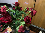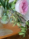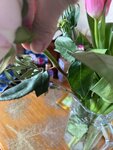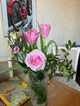 Вот такой страшненький букет оформила продавец моему мужу для подарка, старая Роза с изжованными листьями , ветка барбариса которой видимо подметали пол и тюльпаны больного вида с мятыми листьями. К вечеру все стало вянуть и клониться вниз . Сия красота обошлась в1300 р. В итоге купили другой букет .в другом месте, свежий , весенний и красивый. Вы , дорогие мои , дарите праздник , настроение, это вы должны всегда помнить.а вместо этого втюхиваете людям бракованные старые цветы и радуетесь что обманули.