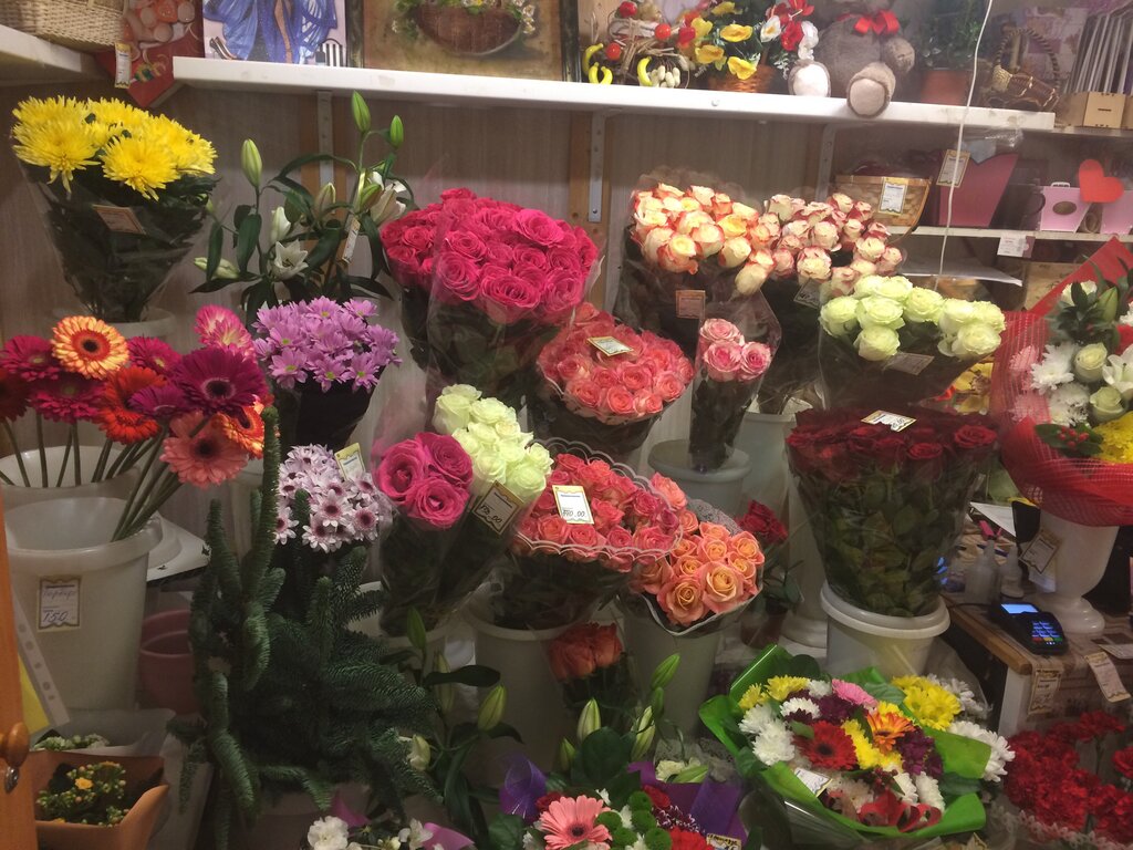 Магазин маленький, звёзд с неба не хватает,но и у него есть свои плюсы +Продавец выходит на связь и пришлёт фото, что сейчас в наличии +Можно зайти рано утром,если мероприятие в первой половине дня, остальные цветочные в районе с 9-10 часов. +Можно заказать или узнать о поступлении цветов к определенному дню. +Немного можно сторговать, что приятно. -Ассортимент не очень большой. -Профессионально не упакуют, продавец просто продавец, ленточка и целлофан да. В срочном порядке зайти можно