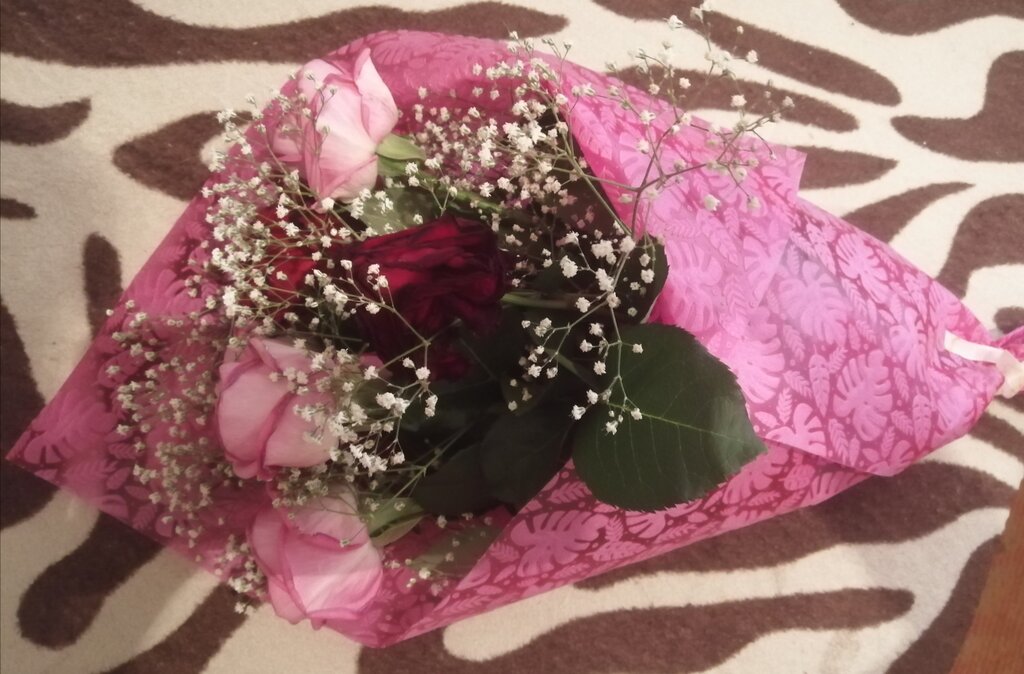 Просто ужасно. Мама покупала там розы 30 го августа. Продавец навязала взять к расным розам миксом ещё и розовые🤦‍♂️ Завернули в ламинированный фетр малинового цвета, с гипсофилой. Сказать что это деревня, то ничего не сказать.... Я бы не взяла такой букет, просто позорище.