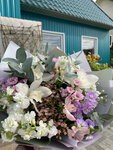 Собрали замечательный современный букет с учетом пожеланий 🌸Несмотря на относительно небольшой выбор цветов, они все свежие. Девушка очень приятная и сделала красиво «хочу то, не знаю что»