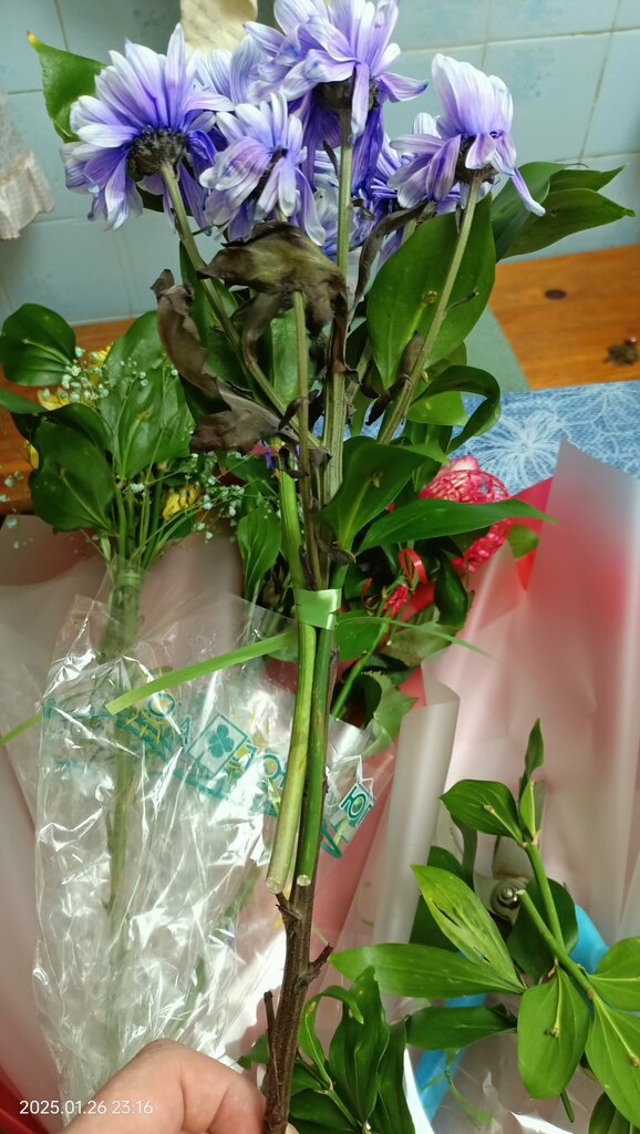 делают букеты из старых цветков и обрезков, букет стоил больше двух тысяч, простоял 4 часа и завял, условия хранения при вручении были соблюдены. Данный цветочный магазин не рекомендую.