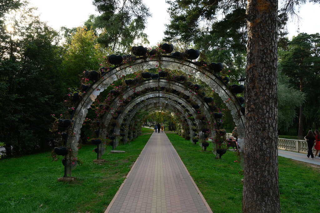 Одна из красивейших зон парка! Постоянно радует взор как когда ты идёшь под светящийся аркой, так и когда видишь её издалека при свете луны. Место может использоваться как отличная фот-зона, около цветов отлично получаются любые снимки! Арка бесперебойно уже много лет мигает разными цветами, создавая приятную атмосферу для всех отдыхающих. А за цветами в клумбах ежедневно ухаживают, часто поливая их. Вся зона в отличном состоянии, и остаётся красивейшим местом и по сей день!