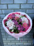 Роза 1 шт Гортензия 1 шт Альстромерия 3 шт Диантусы 3 шт Кустовые розы 2 шт Папоротник Пистация Оформление: Матовый лак пленка