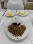 14 дневное пребывание в конце августа - сентябре 2025. Питание трехразовое, разнообразное, включает в себя фрукты, молочные продукты (йогурты, кефир, сметана), каждый день овощи в свежем и обработанном виде. Супов не жалеют, но они без мяса ( был рыбный и один раз с фрикадельками, остальные - постные). Из минусов отмечу, что мало белка (небольшой кусок курицы, рыбы или говядины на обед и ужин, на завтрак есть сосиски, зразы, котлеты или тефтели). То есть, объем еды приличный, но мясными блюдами не избалуют. Меню на заказ на 2 дня вперед. У меня были оздоровительные расслабляющие процедуры, все замечательные - особенно ЛФК в бассейне, жемчужные ванны и массаж шейно-воротниковой зоны. В санатории царит приятная и размеренная атмосфера, отличный пляж, огромная ухоженная территория для прогулок. Есть библиотека - работают с 13 до 16, вечерний досуг тоже организован. Молодежи может быть скучно, но если вы умеете себя занимать, любите подолгу гулять, читать и любоваться красотой, вам понравится. Общительные постояльцы, всегда можно найти компанию. Утром в 7:15 зарядка, легкая ЛФК. Рекомендую всем поправить физическое и ментальное здоровье, чтобы сильно не заскучать - стоит ехать дней на 10, не более. Из связи - отлично ловит Билайн. Фена для волос в номере нет - можно брать, за плату, у администратора. В фитобаре можно купить стакан 1 раз и не платить за него каждый раз, приобретая кислородный коктейль. На территории много котов и собачек, совсем молоденьких. Жаль, что не стерилизуют, а только ставят таблички, что кормить их запрещено.