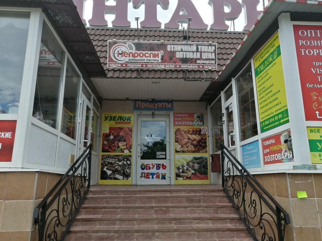 Небольшой торговый центр. Все, что необходимо, можно найти именно здесь. Все для шитья и вязания, мелкого ремонта, различный текстиль и готовые вязаные шапки, и конечно продукт, и аптека. А ещё рубльбум, семена и обувь. Овощная лавка порадует разнообразием ассортимента, а цветочная лавка удовлетворит любой каприз.