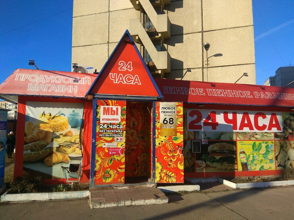 Очень выручает, когда хочется "пить" после 23.00. Ассортимент скудный. Контингент сомнительный, но доброжелательный.