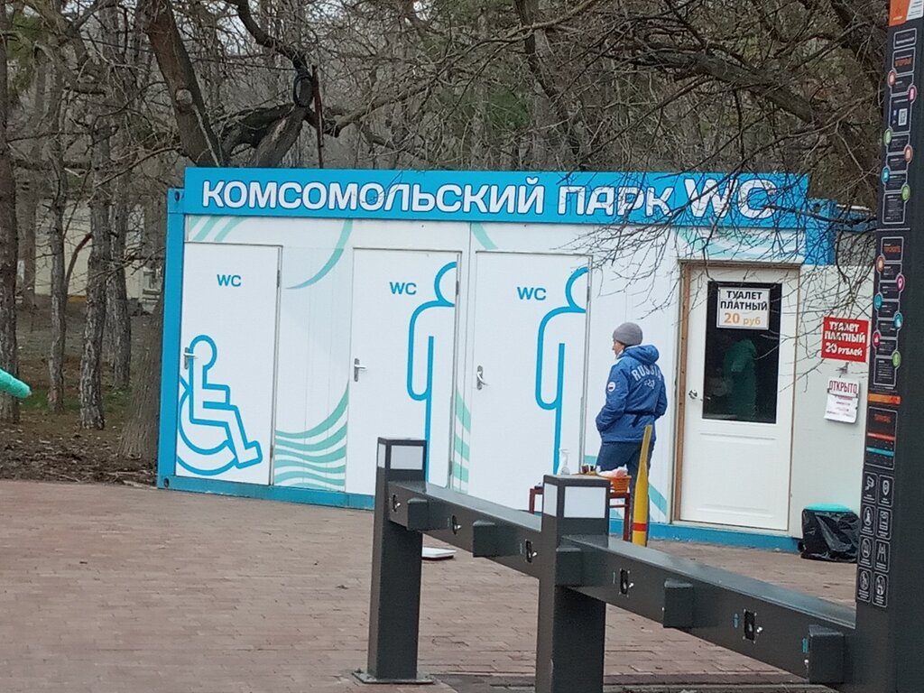 Туалет чистый, стоит 20 рублей. Персонал женщина-хамка: 6-ти летнего ребёнка инвалида заставляла оставить одного на улице или оплатить (он в туалет не хотел) , законы РФ для неё не писаны.