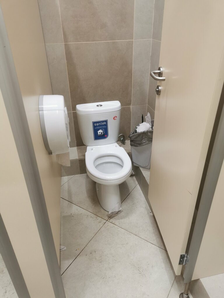 Жесть вообще. Невозможно зайти и закрыть дверь, настолько мало места, надо обтираться ногами об унитаз или вставать на него, чтобы закрыть дверь. Нет туалетной бумаги, не включается вода, 2 кабинки, мало места. При этом нереально огромный коридор. И это в таком модном, большом тц