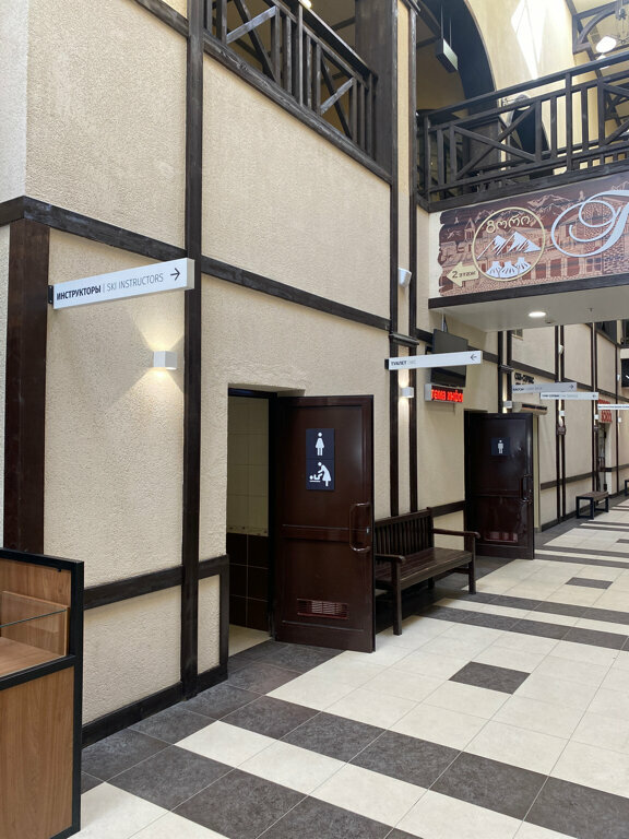 Там вроде как два туалета, найти которые - целый квест. Схема как добраться до одного из: заходите в детский клуб, идете до конца по коридору, сворачиваете направо, идете вдоль синих шкафчиков, не доходя до вывески "камера хранения" справа будет заветная дверь👌