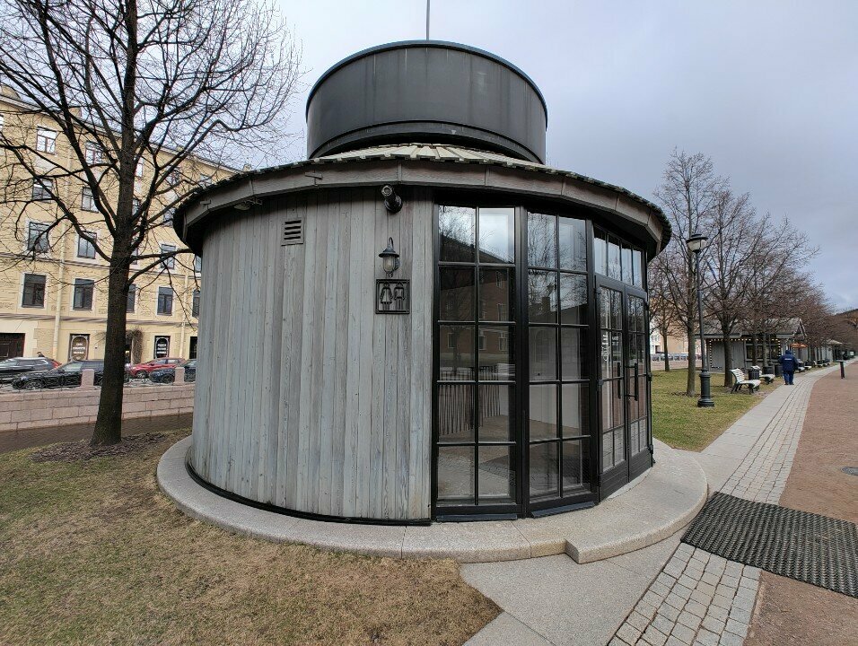 Да, это туалет. Но туалет, масштаб и монументальность которого больше похожи на станции Советского метрополитена))) Обычный с виду павильон открывает дорогу в подземелье, в котором одномоментно уютно разместится человек тридцать))) Питер всё ещё умеет удивлять)))