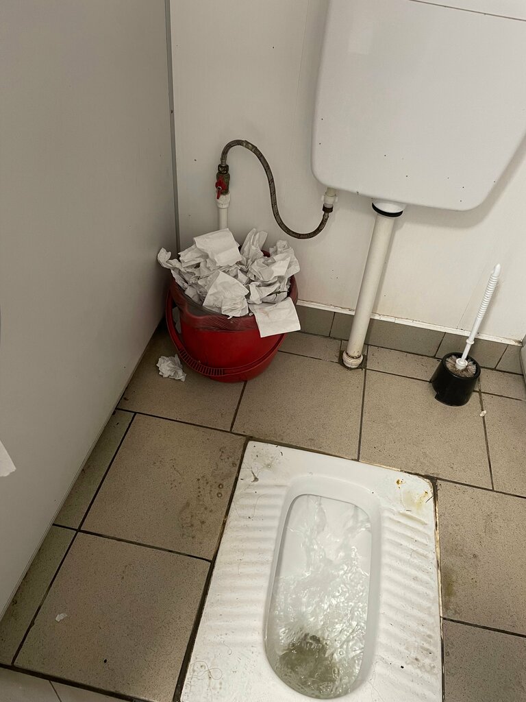Туалет не работает и видимо давно, так как в лес тропа и забор надрезан, чтоб люди ходили в лес, лес засран. Видимо работники туалета не хотят работать и туалет закрывают, а забор сломали чтоб люди засоряли природу